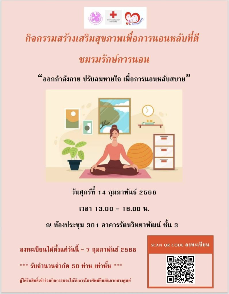 กิจกรรมชมรมรักษ์การนอน สร้างเสริมสุขภาพเพื่อการนอนหลับที่ดี “ออกกำลังกาย ปรับลมหายใจ เพื่อการนอนหลับสบาย” Post Views: 21